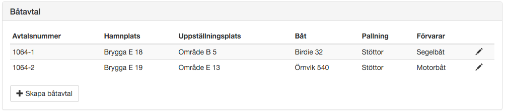 Ett båtavtal innehåller information om båtplats och uppställningsplats, båttyp, pallning etc.